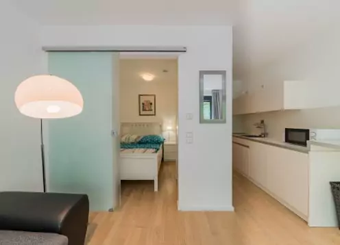 Our 1.5-room apartment is located on the 1st floor of a building which was completely refurbished in 2013.